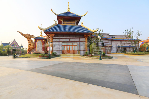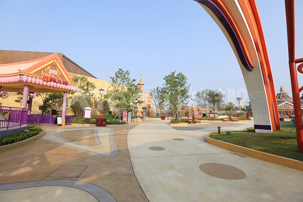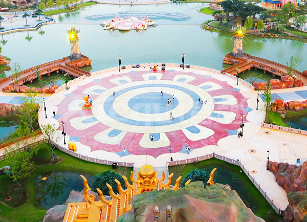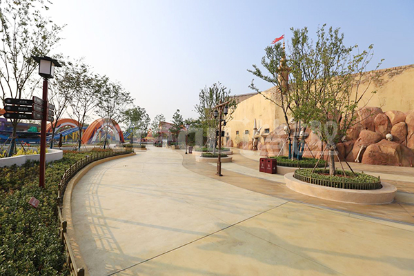 鋪裝類型:彩色混凝土洗砂面藝術地坪、壓印藝術地坪