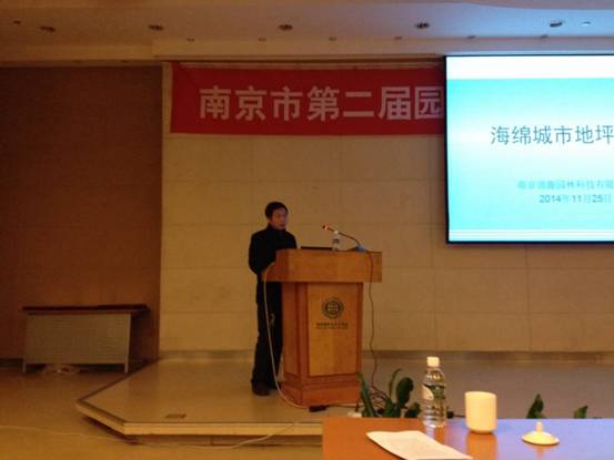 會議上,南京諧趣園林科技有限公司劉從容作了題為“海綿城市地坪建設”的專題報告,就海綿城市道路廣場的透水地坪建設南京彩色透水混凝土地坪南京壓印藝術地坪南京植草地坪、南京彩色瀝青的現狀和應用等內容同與會代表進行了交流和分享,贏得了與會代表的歡迎。