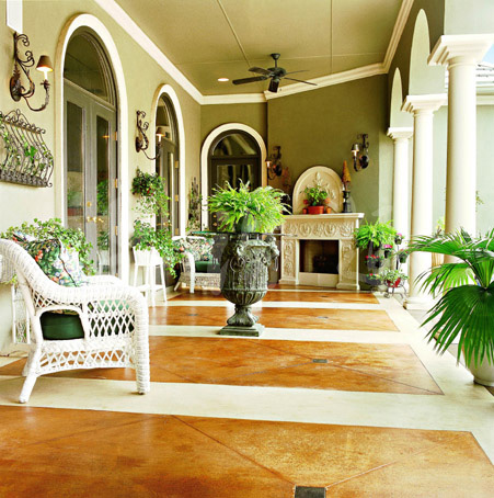 酸著色劑的用途很廣泛,既可單獨(dú)完成對(duì)混凝土表面的藝術(shù)裝飾,又可與彩色混凝土藝術(shù)地坪搭配使用以滿足更高要求的混凝土裝飾效果。